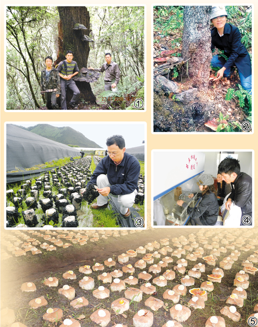 ⑤: Ganoderma leucocontextum is cultivated on a large scale in Nyingchi city, southwest China's Xizang Autonomous Region. (Photo courtesy of the Institute of Microbiology at the Guangdong Academy of Sciences)