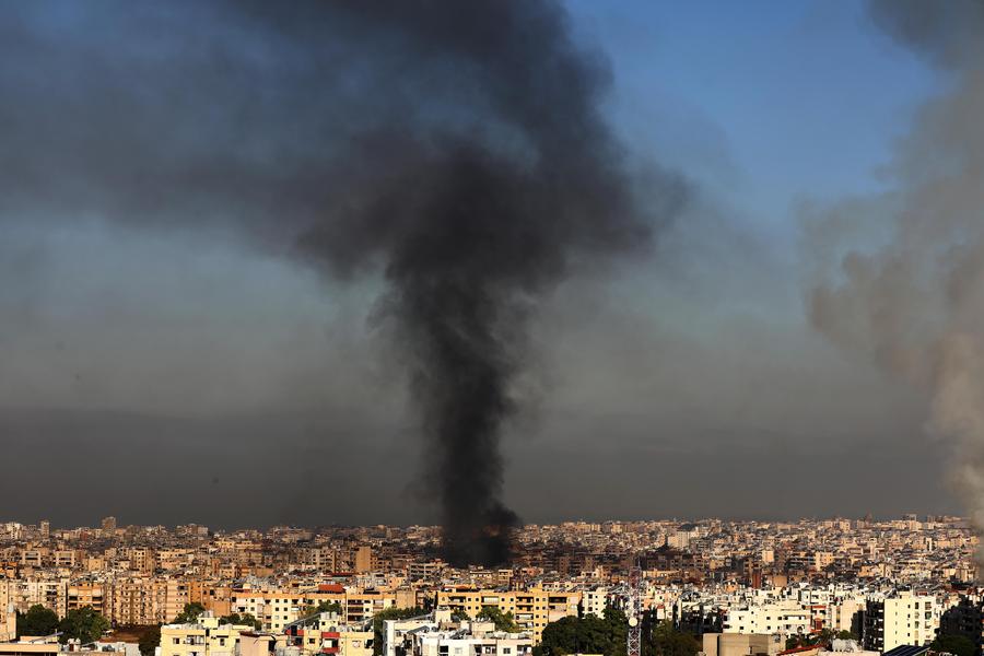 Smoke rises following Israeli airstrikes in Beirut's southern suburb, Lebanon, on Sept. 28, 2024. (Xinhua/Bilal Jawich)