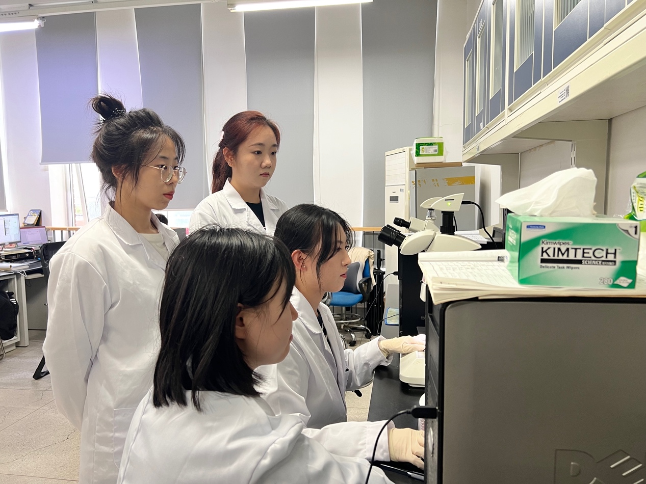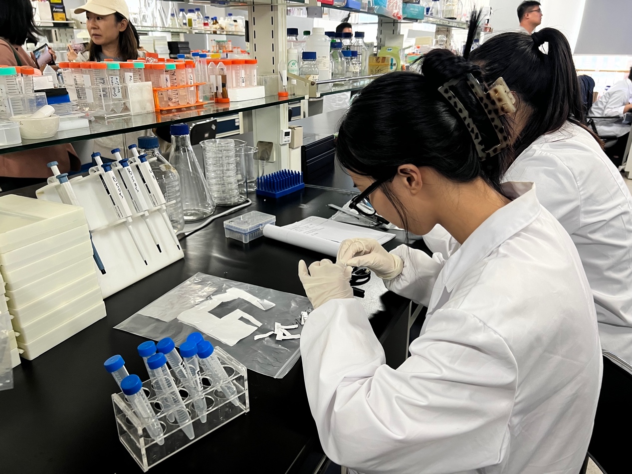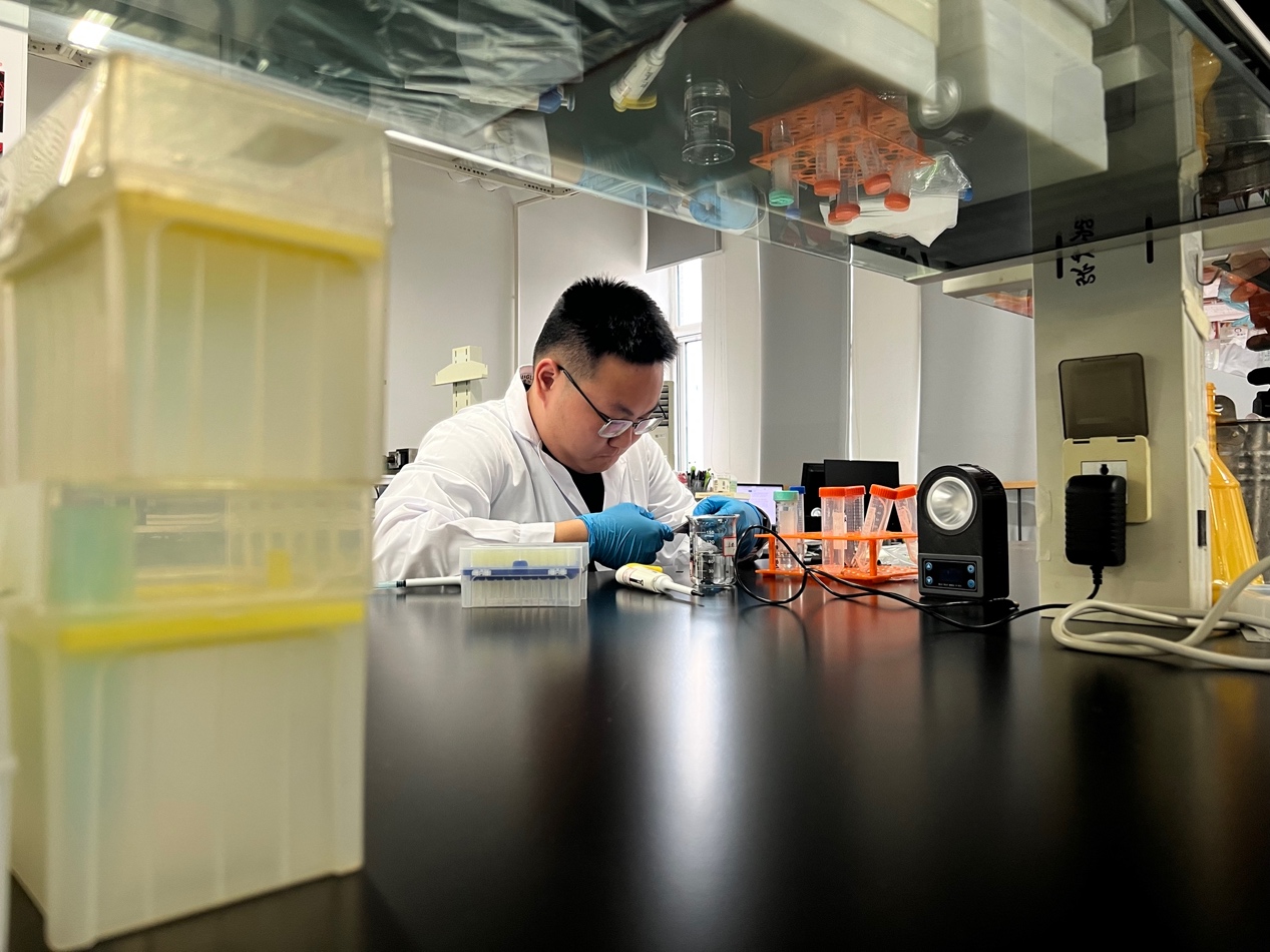 Nankai University students do biological vascular graft-related research at the Laboratory of Tissue Engineering & Cardiovascular Biomaterials at?Nankai University, north China's Tianjin, Sept. 20, 2024. (People's Daily Online/ Zhao Tong)