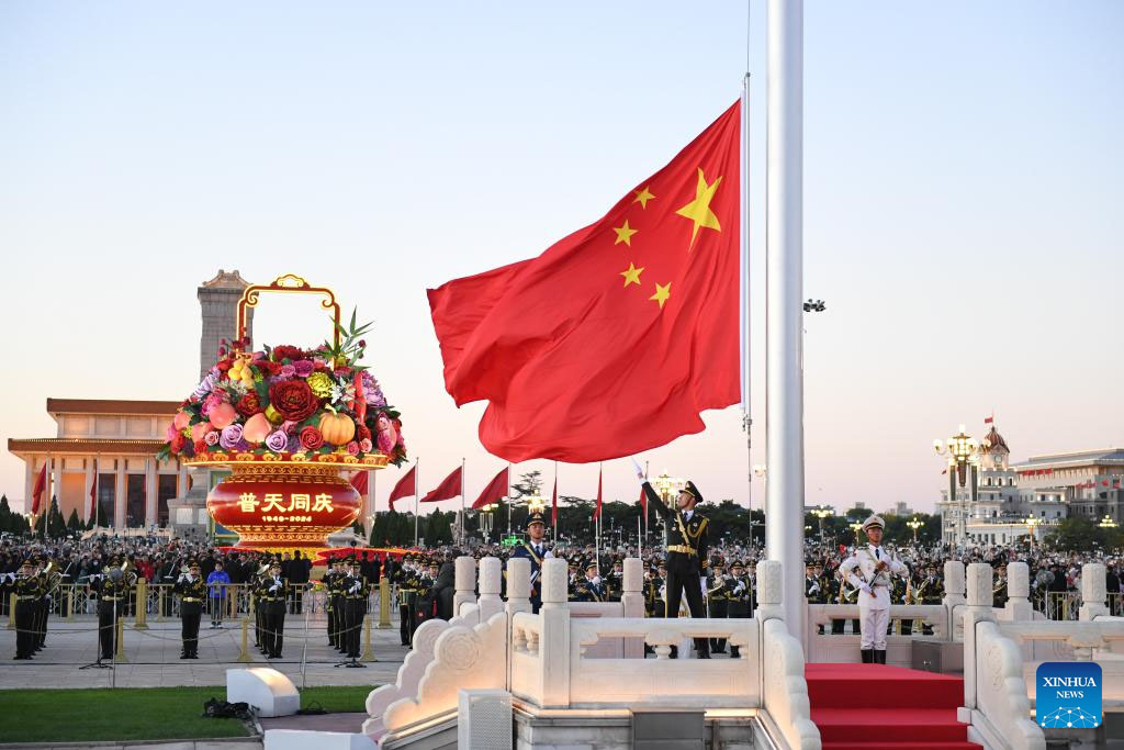 A flag-raising ceremony marking the 75th anniversary of the founding of the People's Republic of China is held at the Tian'anmen Square in Beijing, capital of China, Oct. 1, 2024. (Xinhua/Ren Chao)