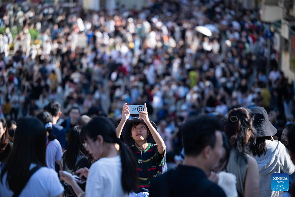 Tourists visit the Ruins of St. Paul's in Macao, south China, Oct. 2, 2024. The National Day holiday period, which runs from Oct. 1 to Oct. 7 this year, is a peak travel and tourism season in China. (Xinhua/Cheong Kam Ka)