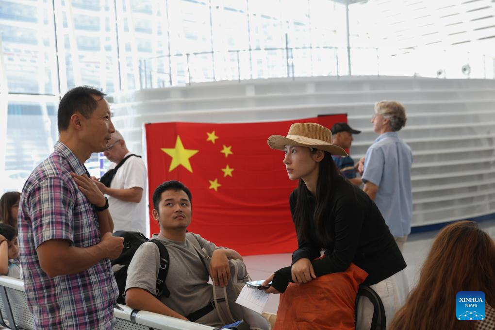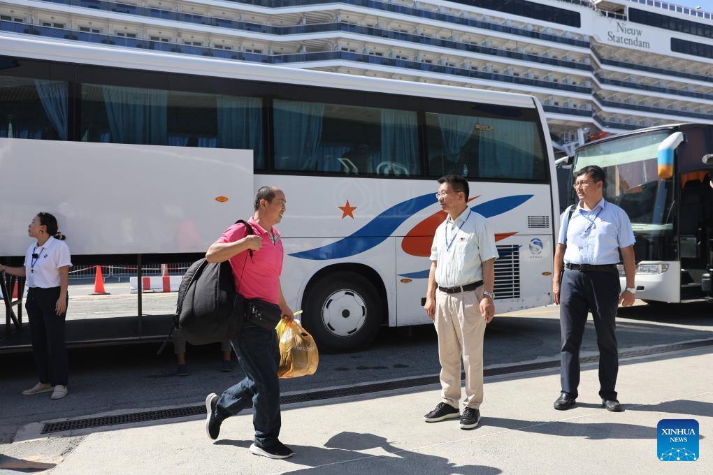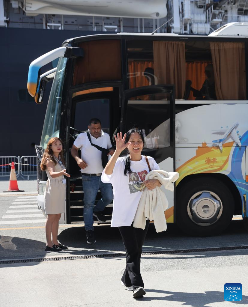 Chinese citizens evacuated from Lebanon are seen at the Port of Limassol, Cyprus, on Oct. 1, 2024. (Xinhua/Li Jing)