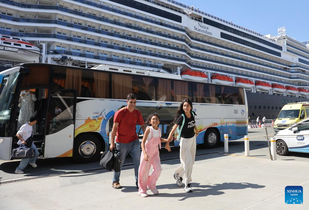 Chinese citizens and their foreign family members evacuated from Lebanon arrive at the Port of Limassol, Cyprus, on Oct. 1, 2024. (Xinhua/Li Jing)
