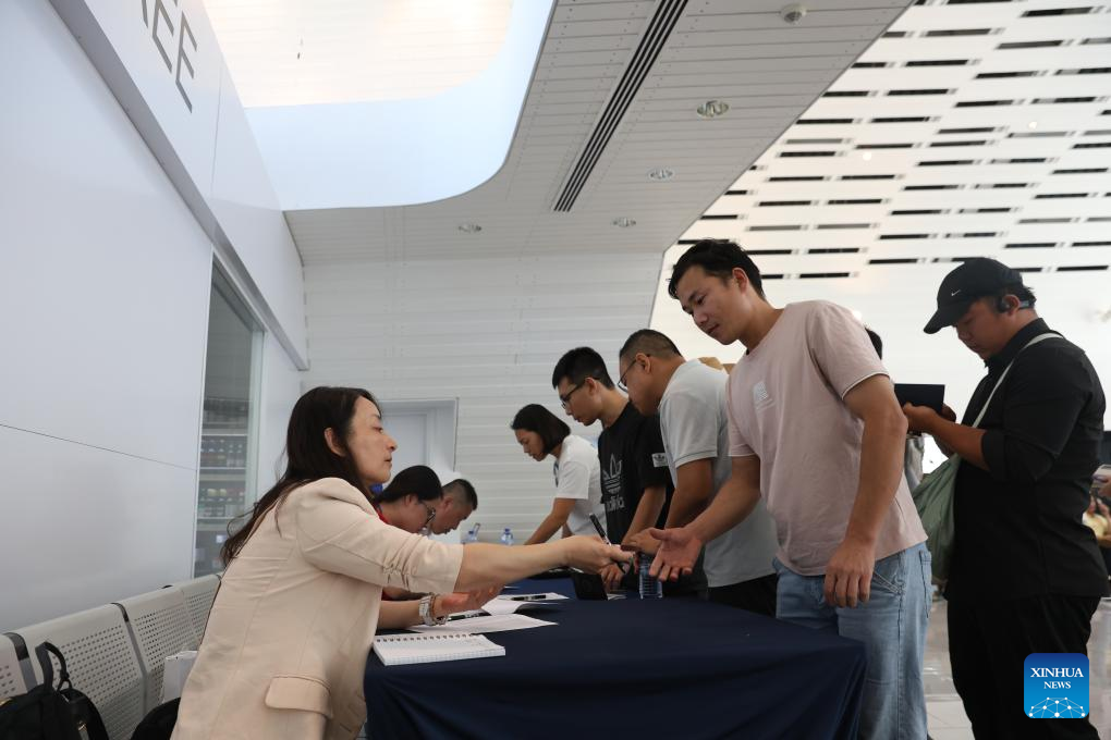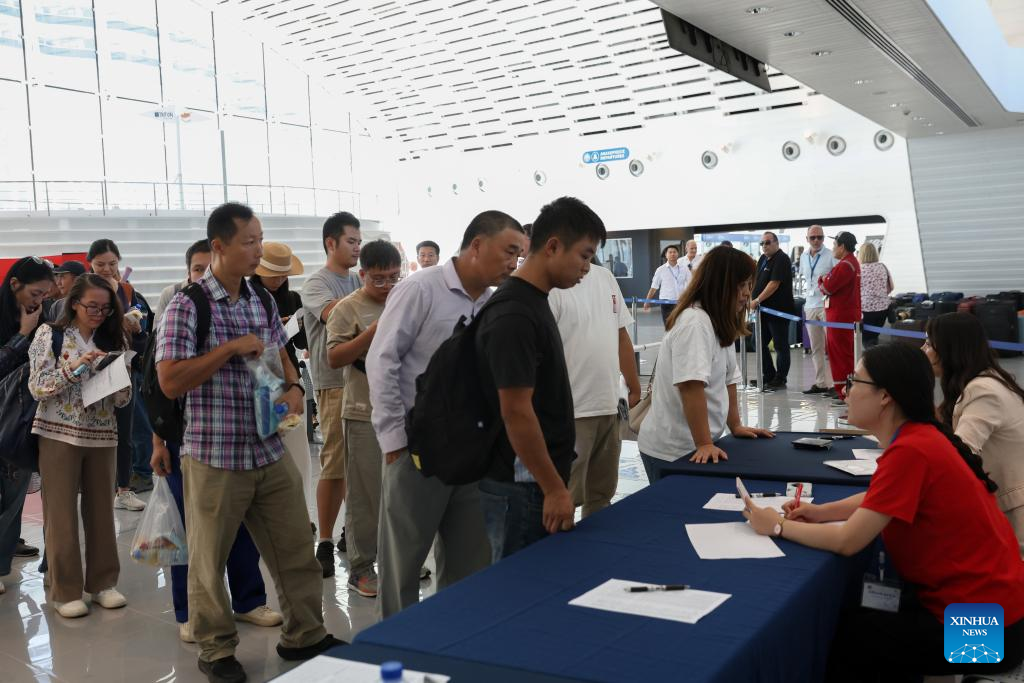 Chinese citizens evacuated from Lebanon line up for procedures at the Port of Limassol, Cyprus, on Oct. 1, 2024. (Xinhua/Li Jing)