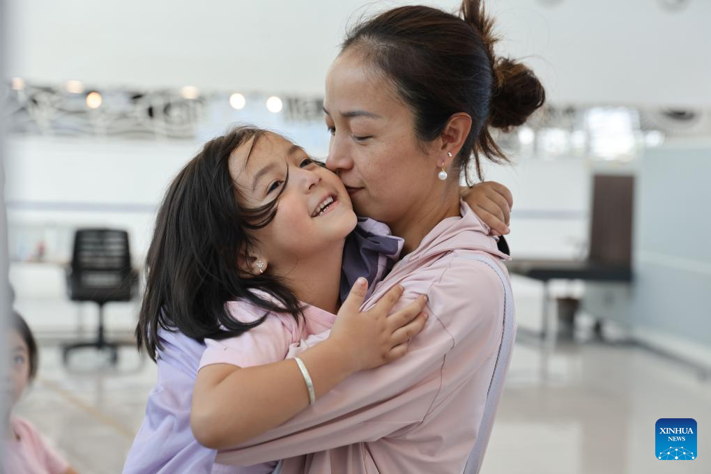 A girl evacuated from Lebanon embraces her mother at the Port of Limassol, Cyprus, on Oct. 1, 2024. (Xinhua/Li Jing)