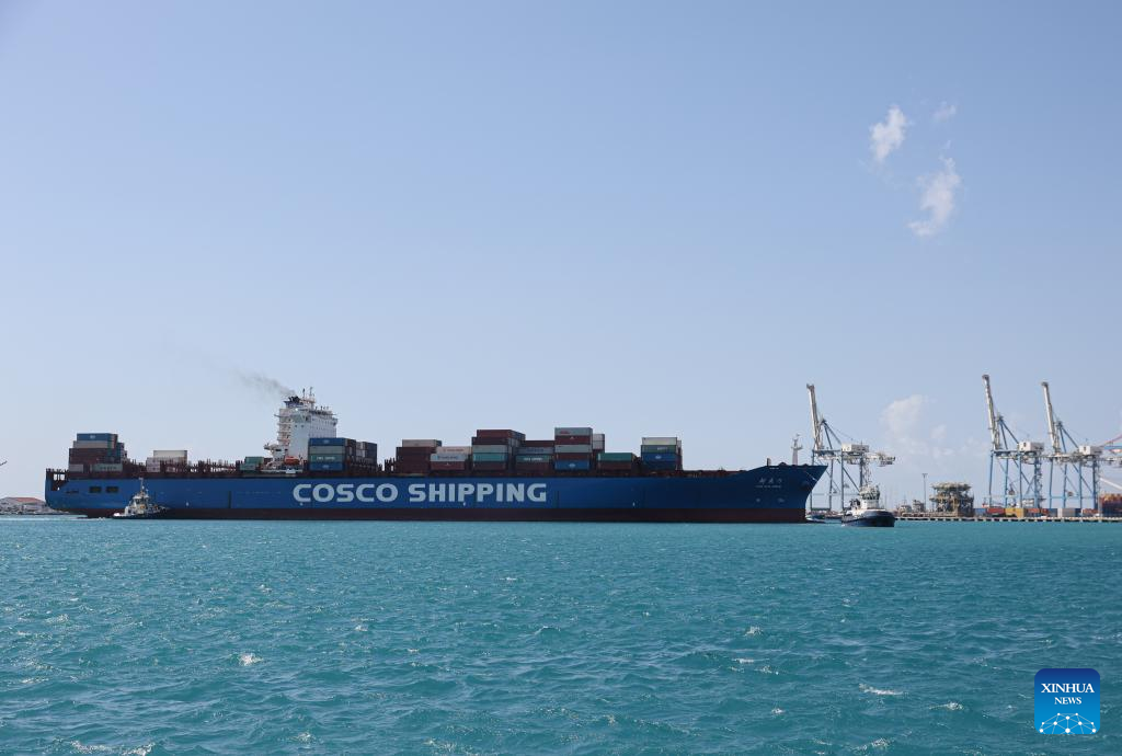 The ship carrying Chinese citizens and their foreign family members evacuated from Lebanon arrives at the Port of Limassol, Cyprus, on Oct. 1, 2024. (Xinhua/Li Jing)
