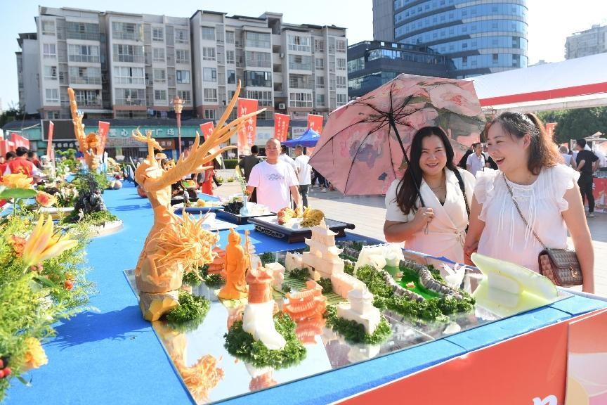 Dishes are displayed at a cooking skills competition held in a park in Peng'an county, Nanchong, southwest China's Sichuan province, Sept. 20, 2024. (People's Daily Online/Peng Shengzhou)