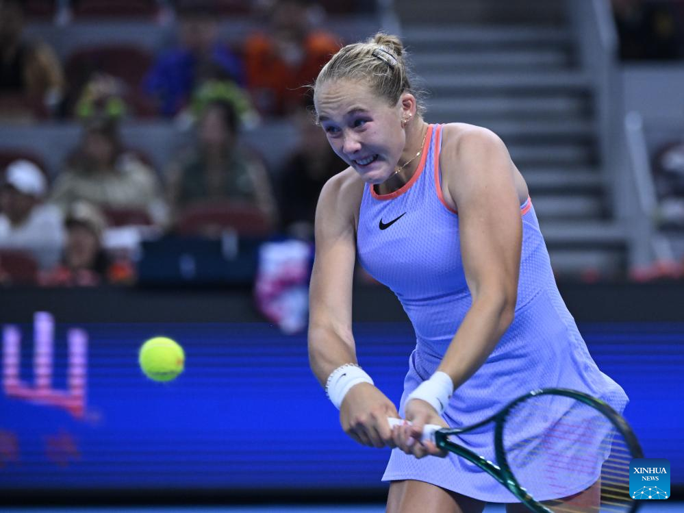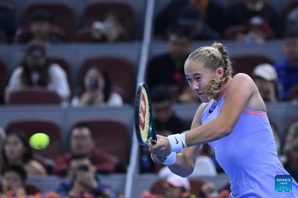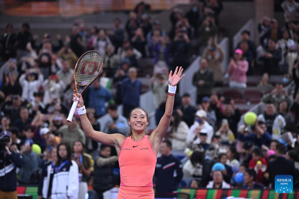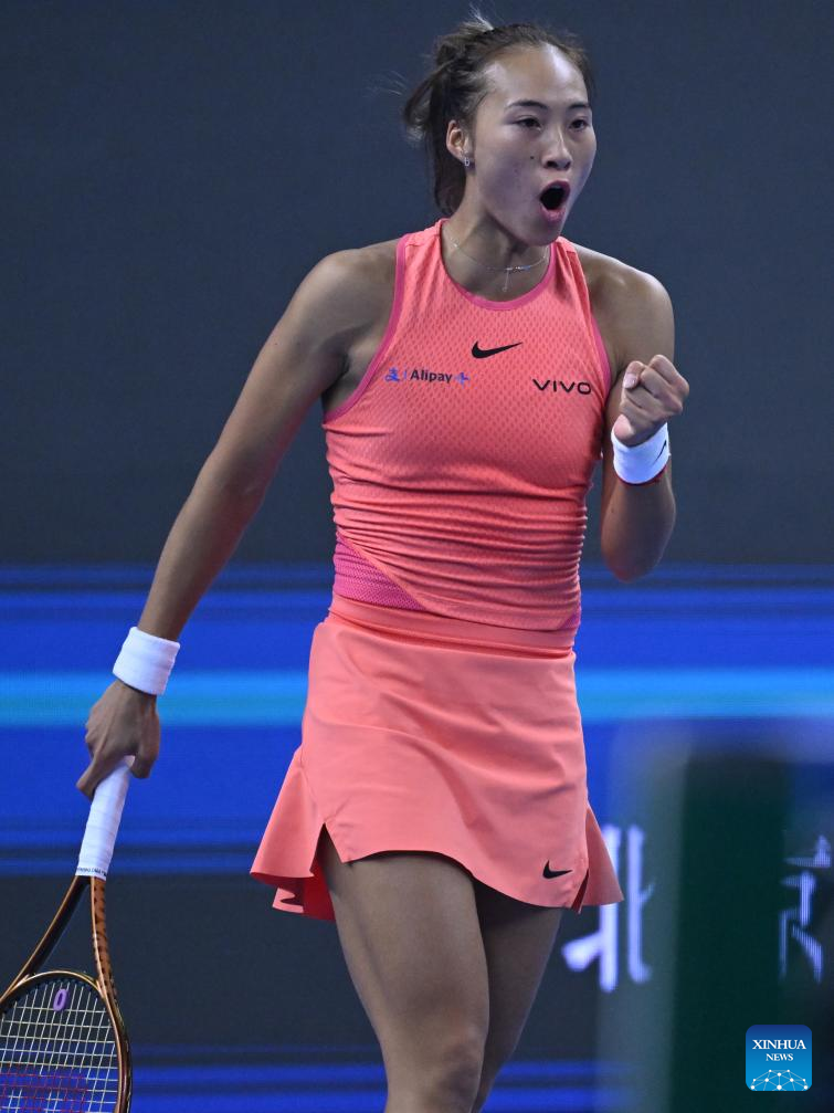 BEIJING, Oct. 4 (Xinhua) -- Olympic champion Zheng Qinwen of China claimed a 5-7, 6-0, 6-4 victory over Mirra Andreeva, advancing to her first WTA 1000 semifinal on Friday.