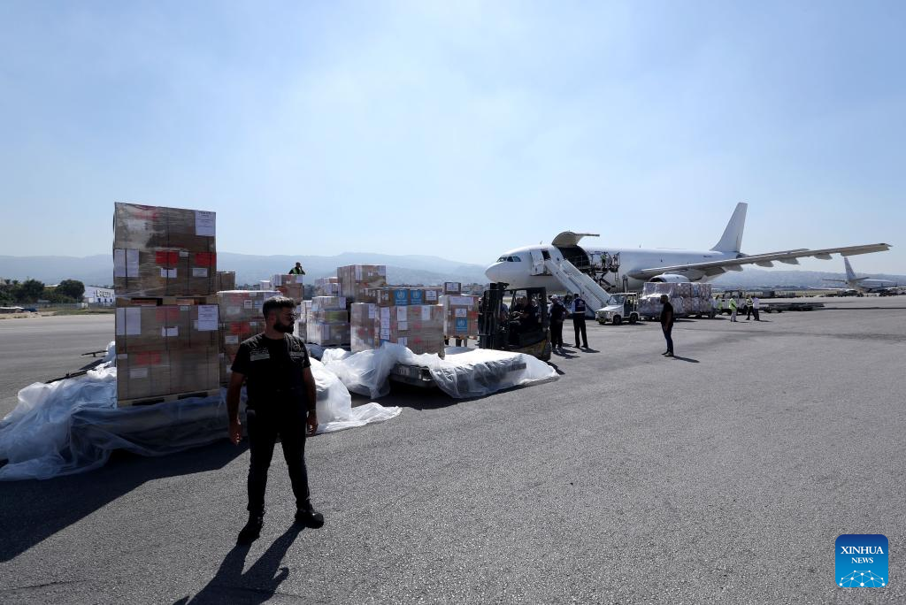 BEIRUT, Oct. 4 (Xinhua) -- An aid plane carrying 55 tons of aid and medical supplies arrived Friday in Lebanon from the United Arab Emirates, the National News Agency (NNA) reported.