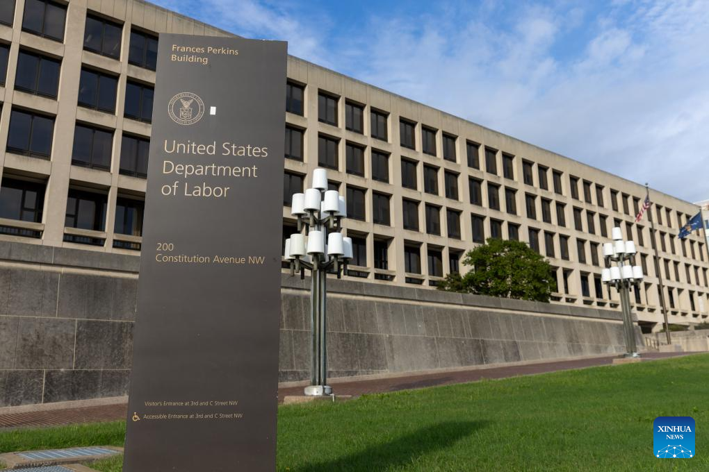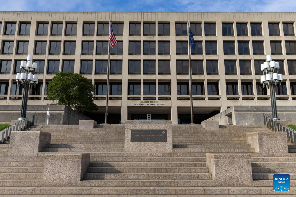 Photo taken on Oct. 4, 2024 shows the U.S. Labor Department's building in Washington, D.C., the United States. U.S. employers added 254,000 jobs in September, as unemployment rate edged down to 4.1 percent, signaling that the labor market remains steady, the U.S. Labor Department reported Friday. (Xinhua/Hu Yousong)