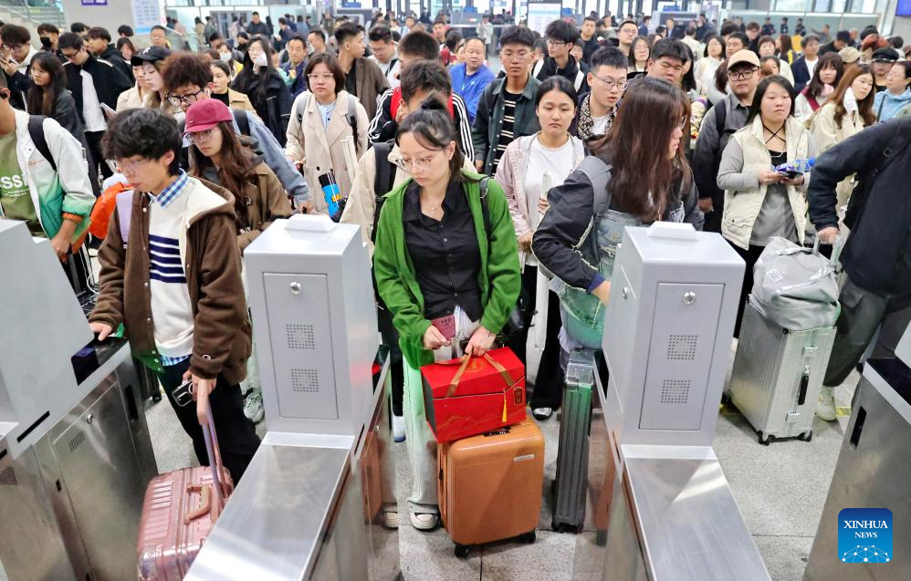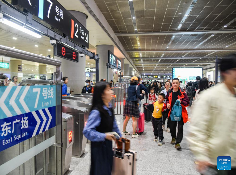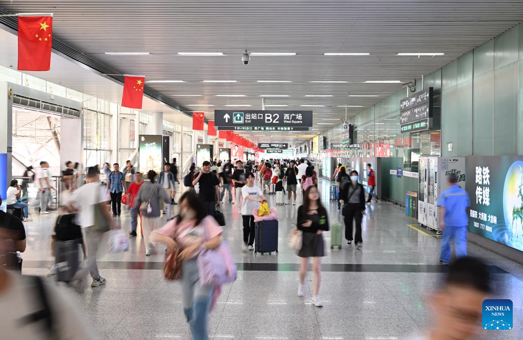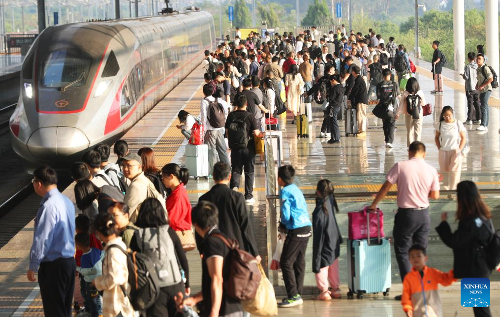 Passengers are pictured at Shenzhen North Railway Station in Shenzhen, south China's Guangdong Province, Oct. 7, 2024. (Xinhua/Mao Siqian)