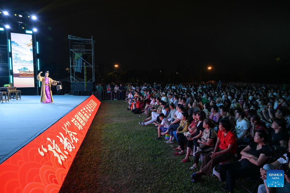 People watch Qiong Opera performance at the Evergreen Park in Haikou, south China's Hainan Province, Oct. 6, 2024. (Xinhua/Pu Xiaoxu)