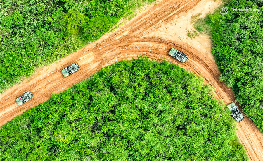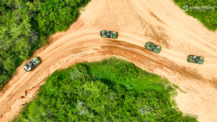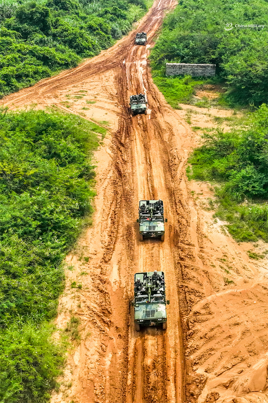Armored vehicles attached to a brigade of the army under the Chinese PLA Eastern Theater Command rumble on muddy road during a maneuver training exercise in late August, 2024. (eng.chinamil.com.cn/Photo by Liu Dewen)