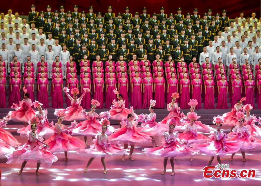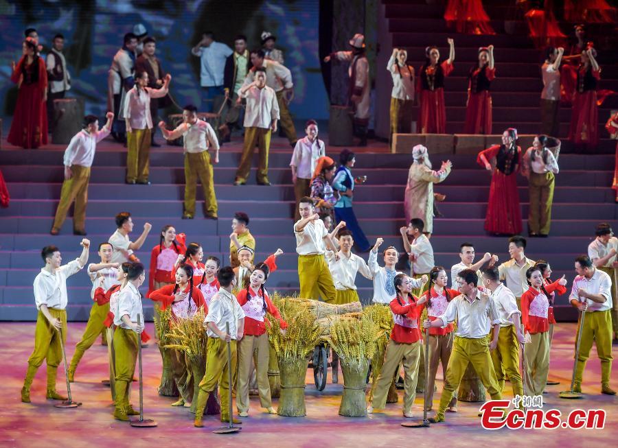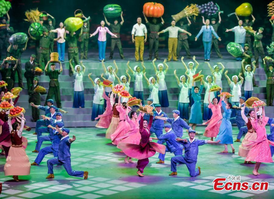 Artists perform to mark the 70th anniversary of the founding of the Xinjiang Production and Construction Corps (XPCC) in Urumqi, Xinjiang Uygur Autonomous Region, Oct. 6, 2024. (Photo: China News Service/Liu Xin)