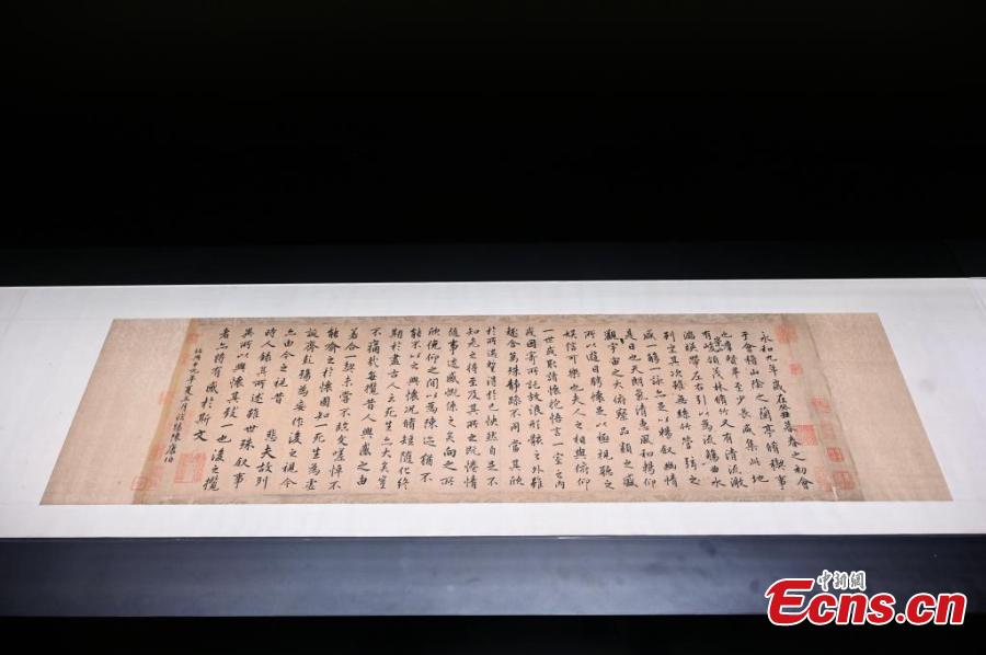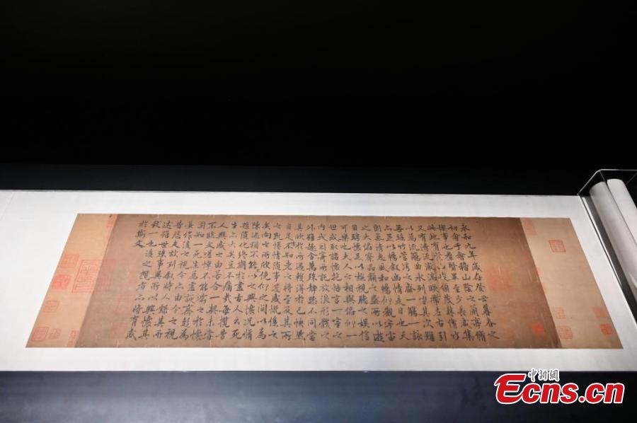 The Preface to the Poems Composed at the Orchid Pavilion after Wang Xizhi copied by the Song Emperor Renzong is on display at the Sotheby's in the Hong Kong Special Administrative Region, Oct. 8, 2024. (Photo: China News Service/Li Zhihua)