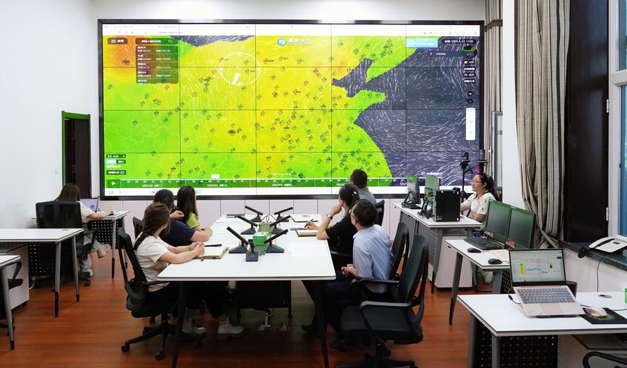 This photo taken on May 20, 2024 shows staff members working at an office of the air-pollution prevention and control center in Changji Hui Autonomous Prefecture, northwest China's Xinjiang Uygur Autonomous Region. (Xinhua/Aman)