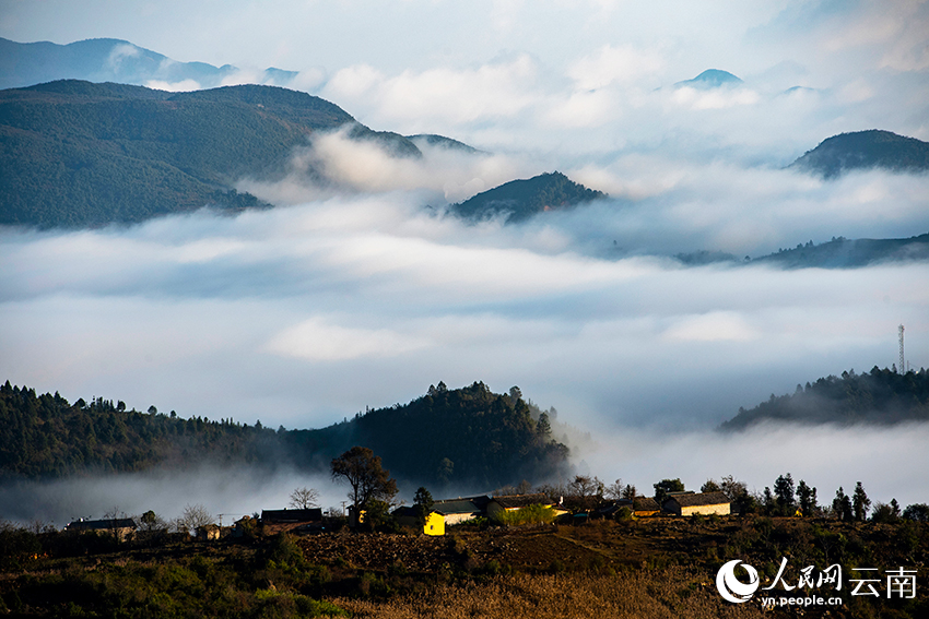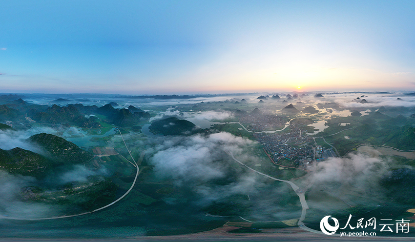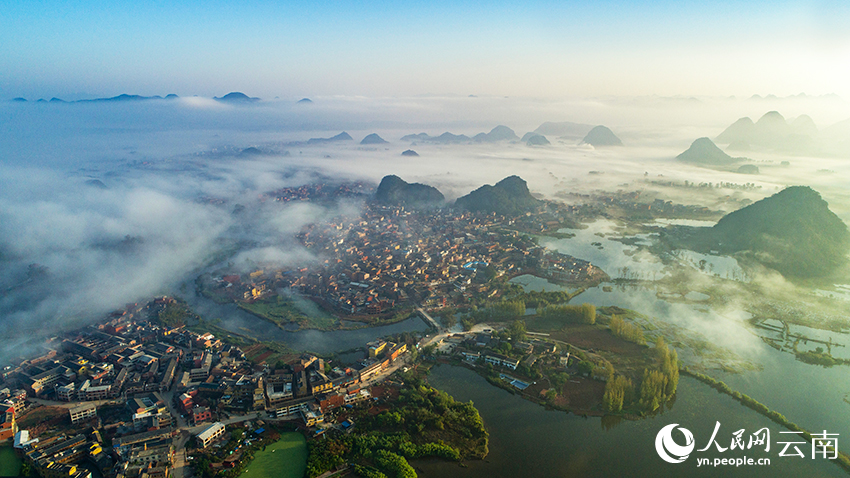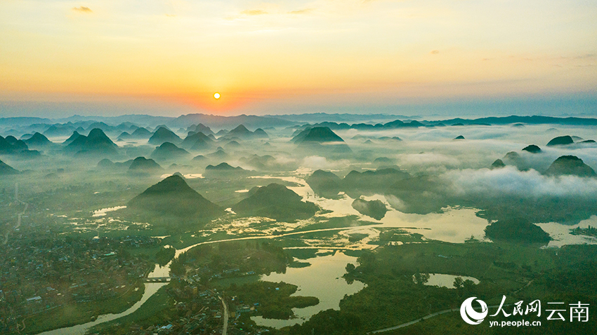 Southwest China's Yunnan Province presents a marvelous landscape amid the golden autumn season. Recently, Puzhehei Karst National Wetland Park in Qiubei county, Wenshan Zhuang and Miao autonomous prefecture, Yunnan, was wreathed in cloud and mist, giving it a picture-like vibe.