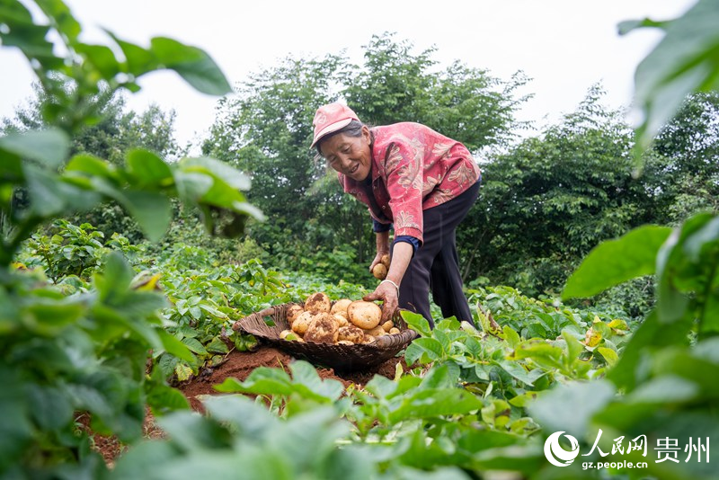 A farmer harvests potatoes in Ertang township, Weining Yi, Hui and Miao Autonomous County in southwest China's Guizhou Province. (People's Daily Online/Tu Min)