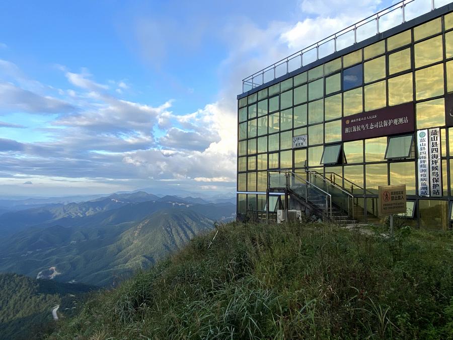 This photo taken on Sept. 19, 2023 with a mobile phone shows a station set up for bird protection in Lanshan County, central China's Hunan Province. (Xinhua/Liu Wangmin)