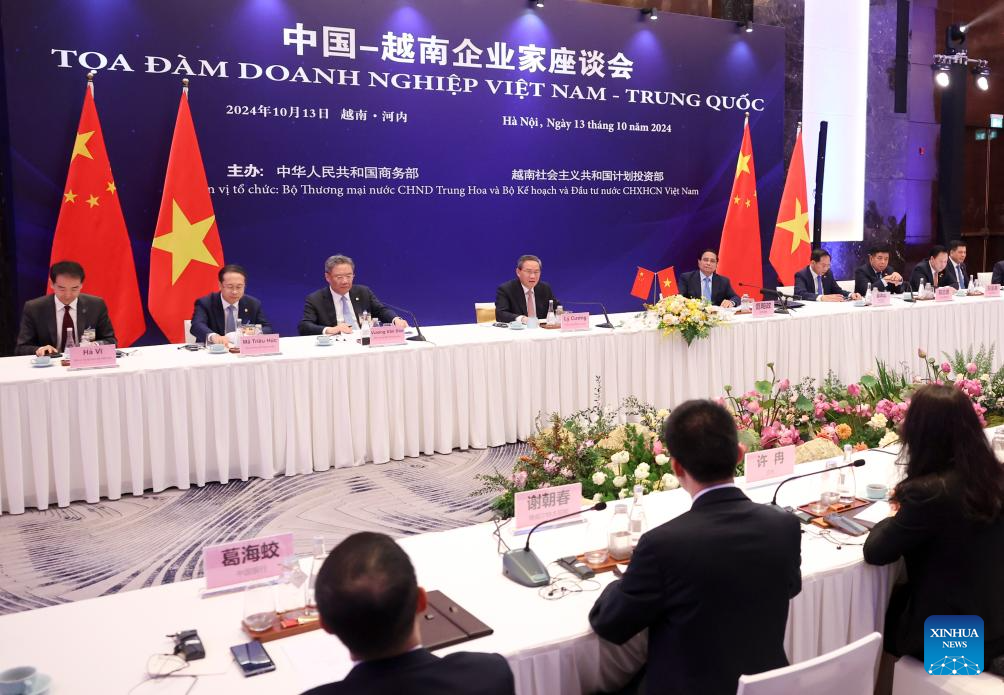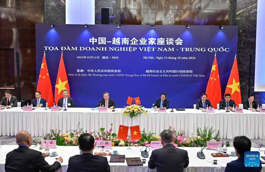 HANOI, Oct. 13 (Xinhua) -- Chinese Premier Li Qiang said here Sunday it is hoped that Chinese and Vietnamese entrepreneurs actively follow the general trend, better seize opportunities and further strengthen cooperation for greater development of their own businesses and contribute to the common development of the two countries.