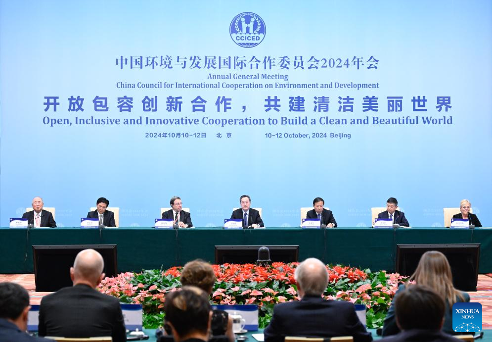 BEIJING, Oct. 12 (Xinhua) -- Chinese Vice Premier Ding Xuexiang, also chairperson of the China Council for International Cooperation on Environment and Development (CCICED), delivered a speech at the 2024 annual CCICED meeting on Saturday.
