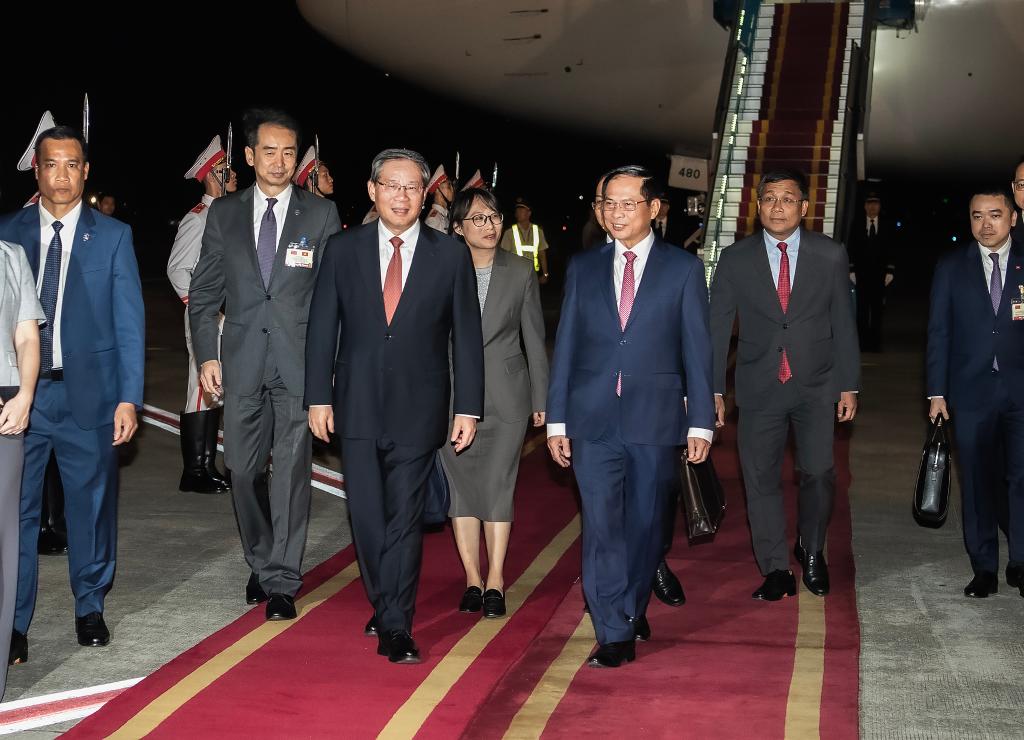 Chinese Premier Li Qiang arrives at Noi Bai International Airport in Hanoi, Vietnam, Oct. 12, 2024. Li arrived here on Saturday for an official visit to Vietnam, at the invitation of his Vietnamese counterpart, Pham Minh Chinh. (Xinhua/Li Tao)