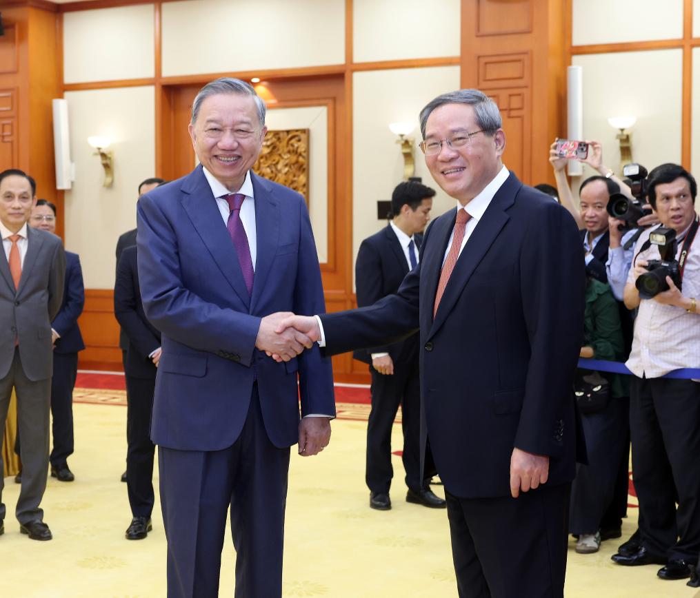 Li conveyed the cordial greetings of Xi Jinping, general secretary of the Communist Party of China Central Committee and Chinese president, to To Lam, saying that in August this year, the top leaders of the two parties and countries held a meeting in Beijing and made a strategic plan for promoting the building of a China-Vietnam community with a shared future, which charted the course for the development of bilateral relations.
