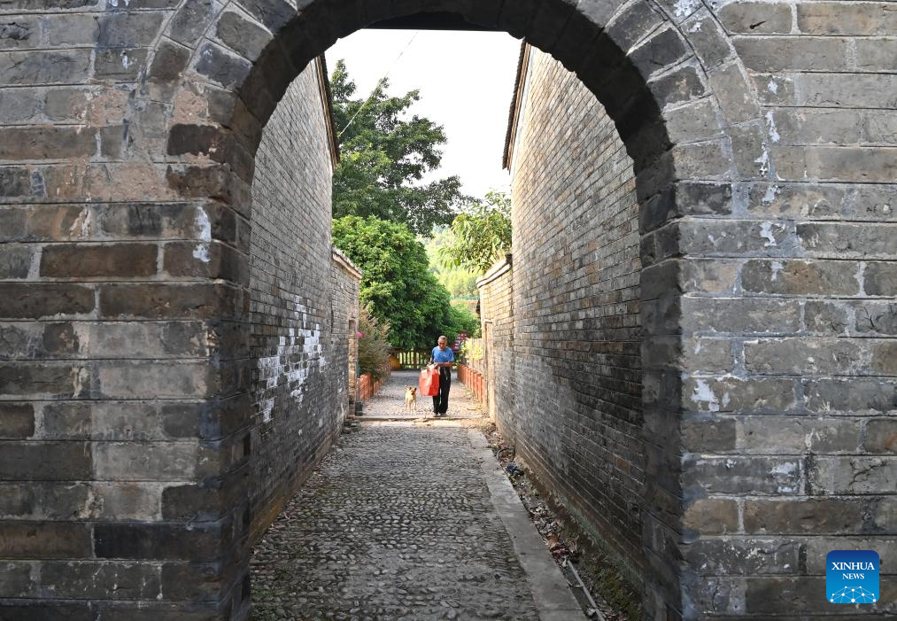 A villager walks in an alley at Nalu Village of Xiangzhou County, south China's Guangxi Zhuang Autonomous Region, Oct. 9, 2024.