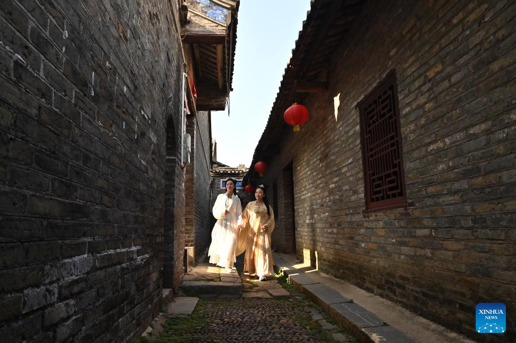 Tourists walk in an alley at Nalu Village of Xiangzhou County, south China's Guangxi Zhuang Autonomous Region, Oct. 10, 2024.