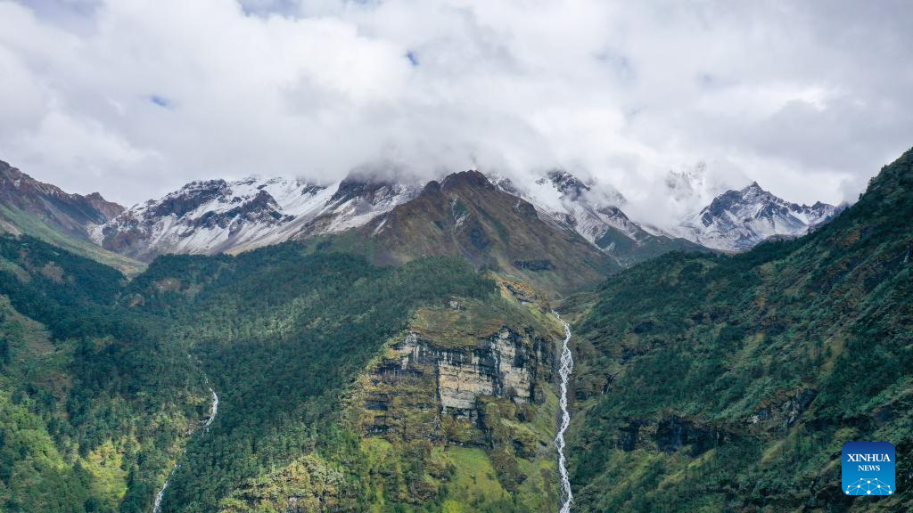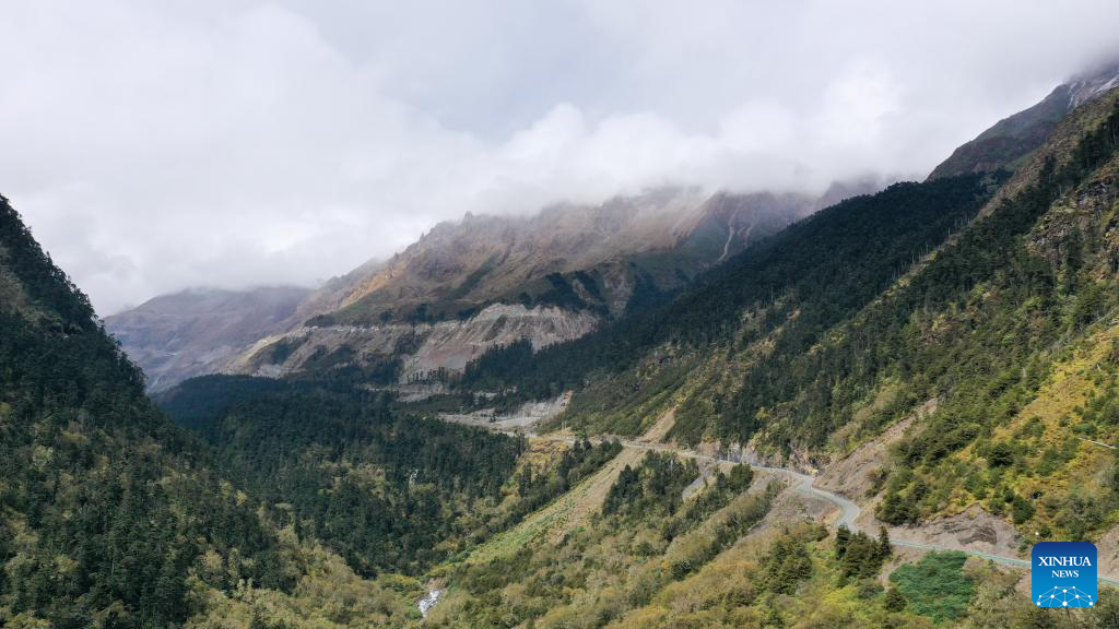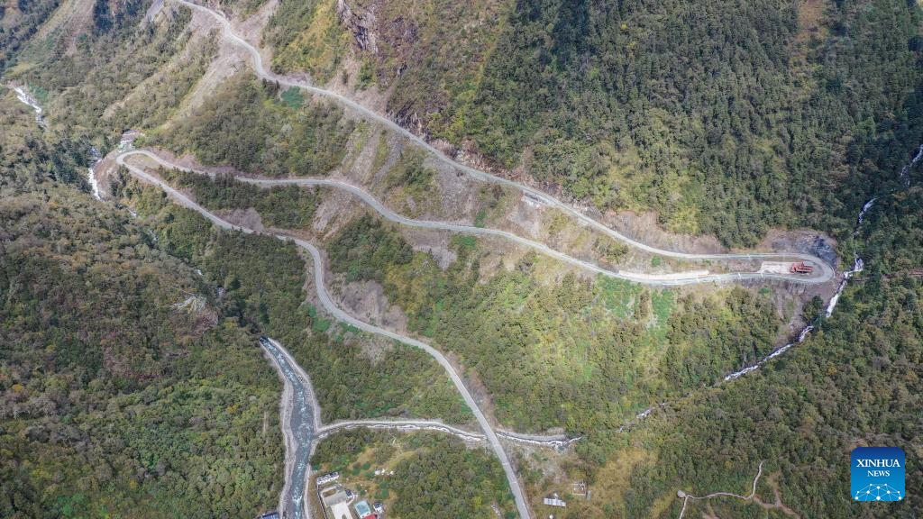 An aerial drone photo taken on Oct. 14, 2024 shows roads near Yumai Township in Shannan City, southwest China's Xizang Autonomous Region. (Xinhua/Ding Ting)
