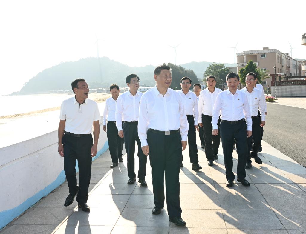 On Tuesday afternoon, Xi inspected Dongshan County in the city of Zhangzhou, and learned about the sale of dried seafood and the fishing harvest at a local village.