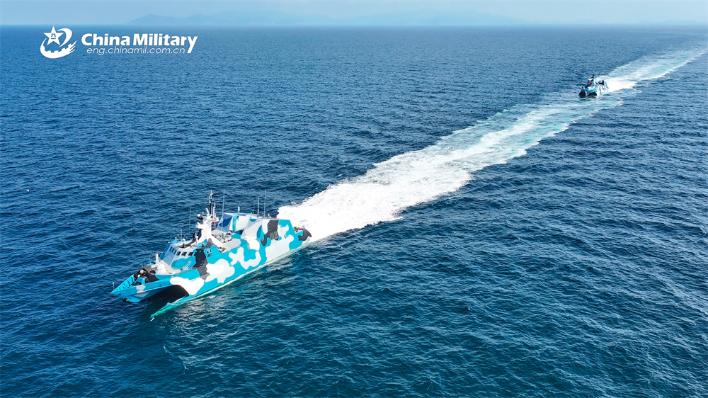 Fast attack missile boats attached to a group with the navy under the Chinese PLA Southern Theater Command steam in formation during a recent maritime training exercise. (eng.chinamil.com.cn/Photo by Wan Songtao)