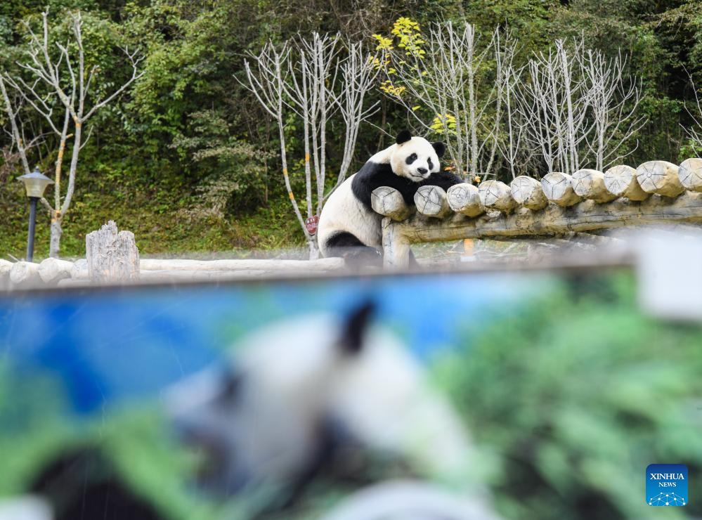 A giant panda is seen at a panda park in Jiuzhaigou County, southwest China's Sichuan Province, Oct. 10, 2024. (Xinhua/Wang Xi)