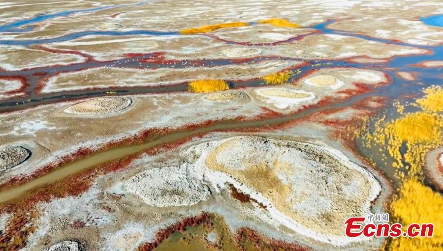 Photo shows the autumn scenery of Lake Gascule in Mangya city, northwest China's Qinghai Province. (Photo: China News Service/Wang Xiaojiong)