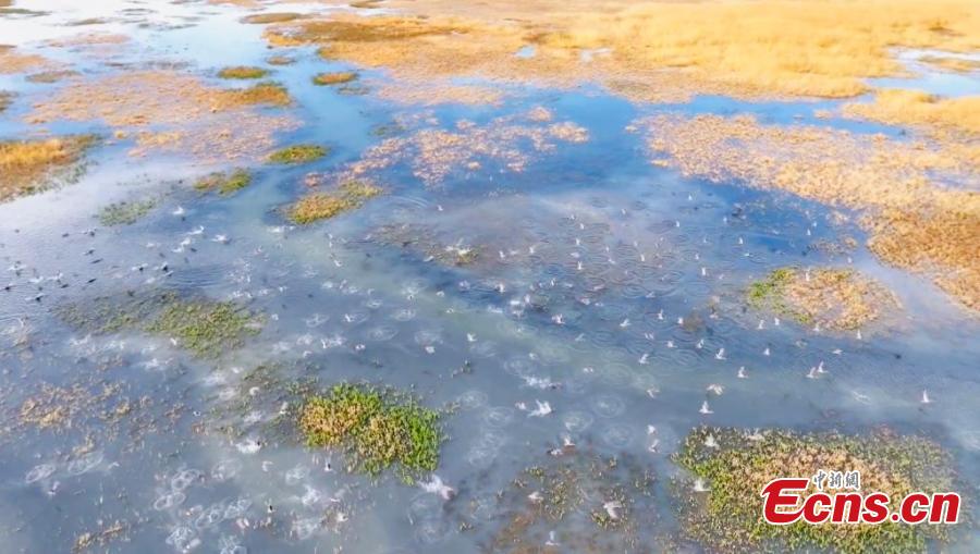 Thousands of migratory birds rest in wetlands of Lake Gascule in NW China’s Qinghai