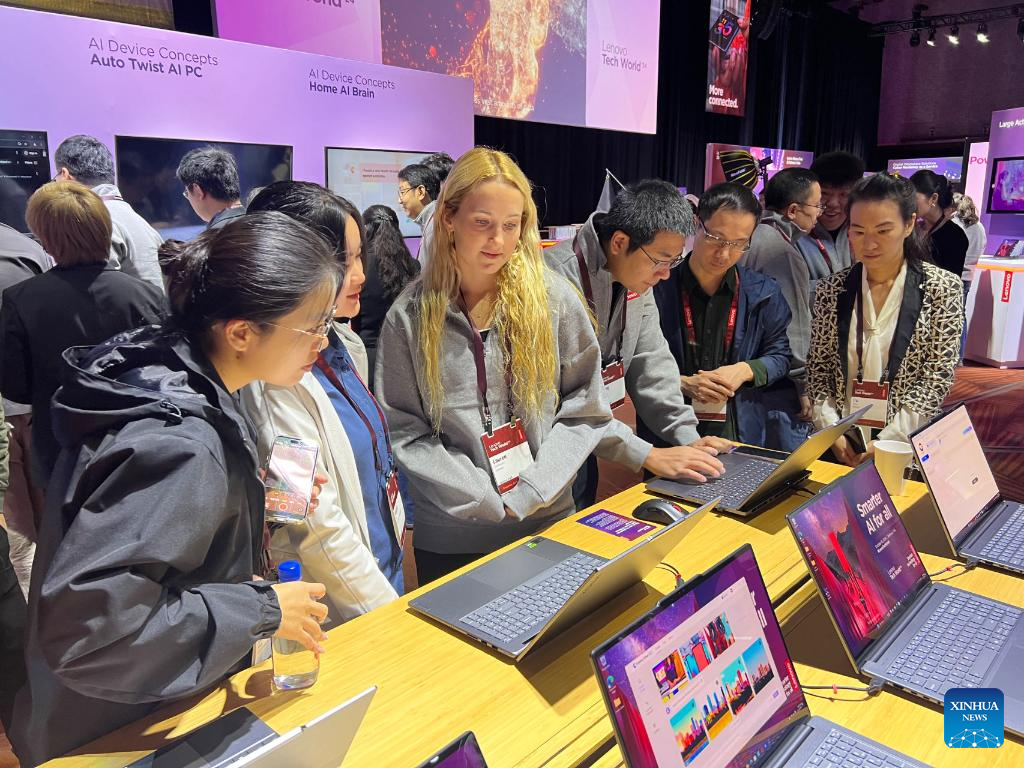 People visit the annual tech summit of Lenovo titled "Lenovo Tech World 24" in Seattle, the United States, Oct. 15, 2024. Lenovo launched its annual tech summit in Seattle, the U.S. state of Washington, on Tuesday, featuring the latest innovations and solutions in artificial intelligence (AI). (Xinhua/Tan Jingjing)
