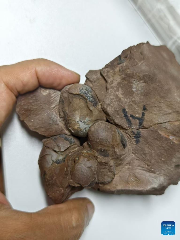 NANCHANG, Oct. 17 (Xinhua) -- Chinese researchers have discovered a new type of dinosaur egg fossils in east China's Jiangxi Province, with one measuring just 29 mm in length, the smallest ever found globally.
