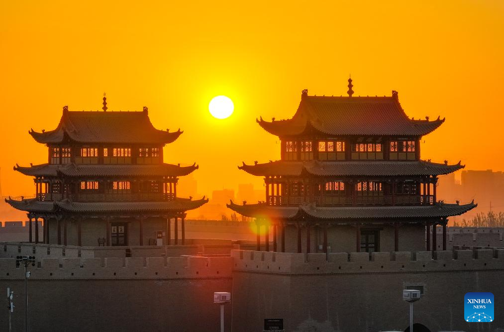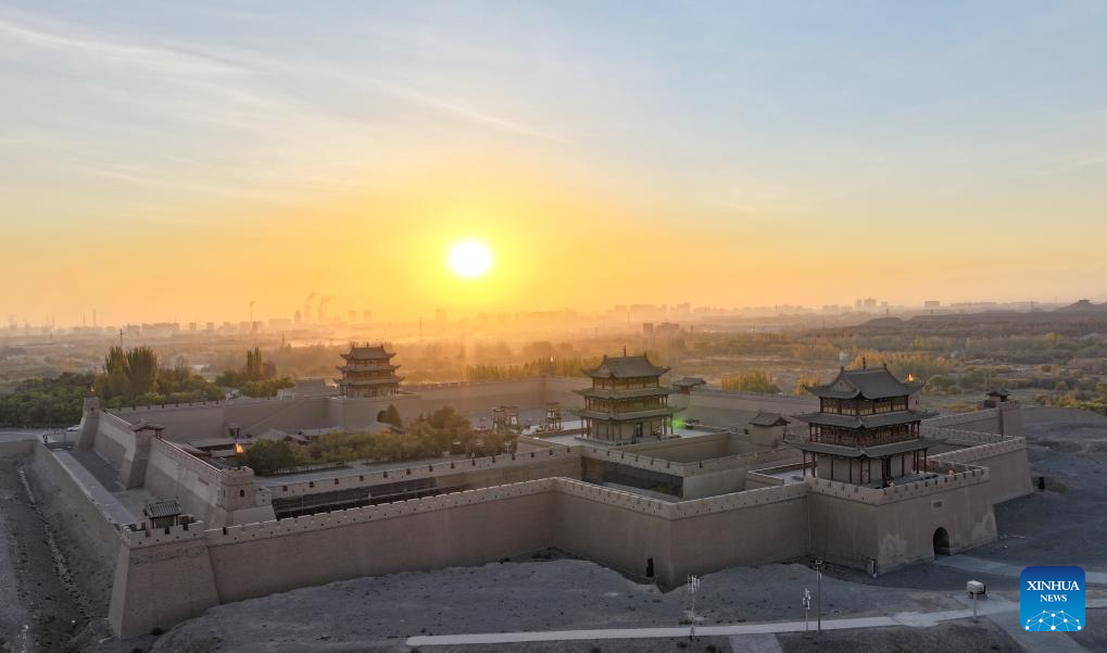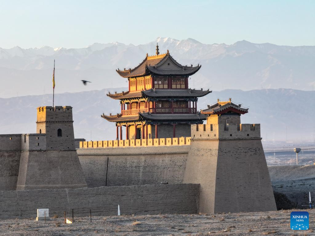 A drone photo taken on Oct. 17, 2024 shows the autumn scenery of the Jiayu Pass in the city of Jiayuguan, northwest China's Gansu Province. The Jiayu Pass is the starting point of a section of the Great Wall constructed during the Ming Dynasty (1368-1644). The pass also served as a vital passage on the ancient Silk Road. (Xinhua/Chen Yehua)