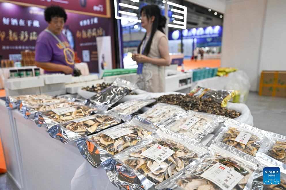 This photo taken on Oct. 17, 2024 shows fungi from southwest China's Yunnan Province displayed during the 2nd Hainan International Tropical Food Supply Chain Expo in Haikou, south China's Hainan Province. The 2nd Hainan International Tropical Food Supply Chain Expo kicked off here Thursday. (Xinhua/Pu Xiaoxu)