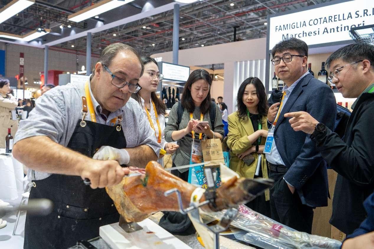 Spanish ham is exhibited at the sixth China International Import Expo, November 7, 2023. (Photo by Weng Qiyu/People's Daily Online)