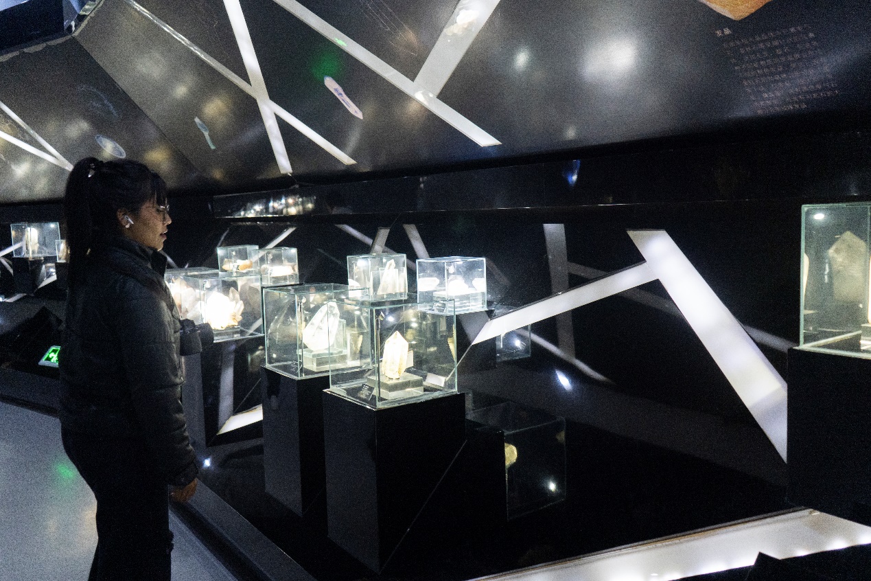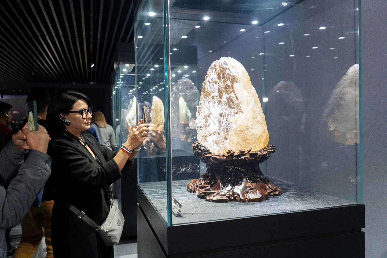 A foreign journalist tours the China Donghai Crystal Museum in Donghai county, Lianyungang city, east China's Jiangsu Province, on Oct. 21, 2024. (People's Daily Online/Chang Sha)