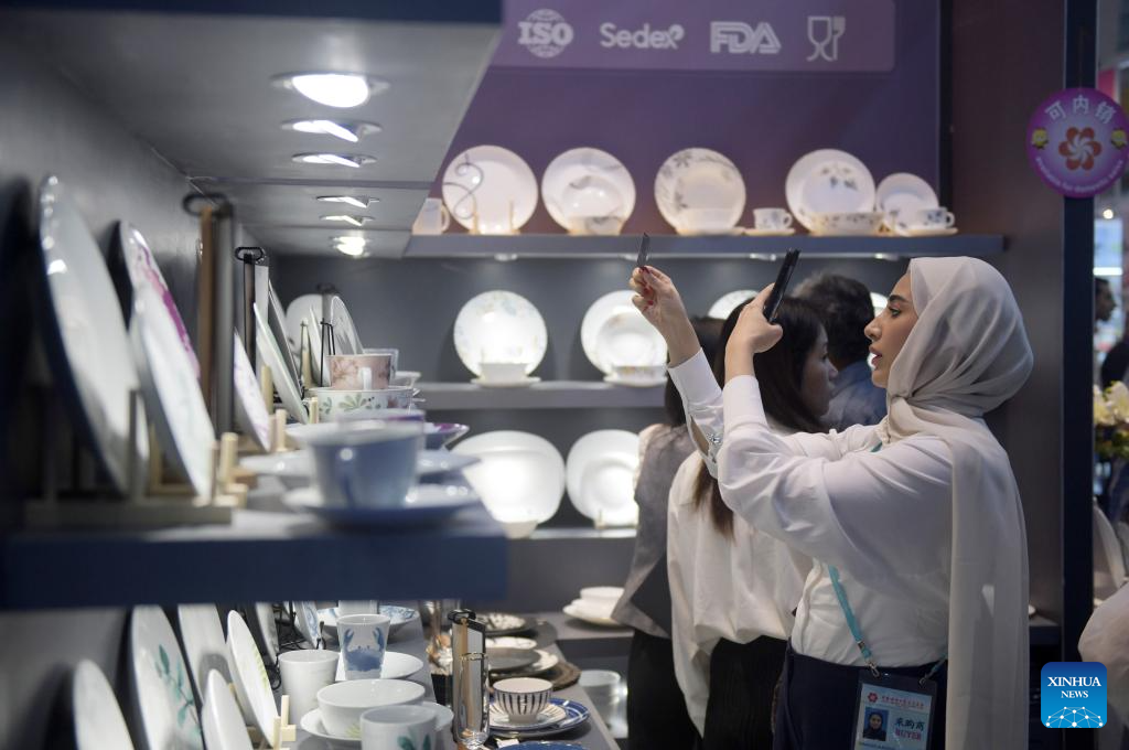 A buyer visits the 136th China Import and Export Fair in Guangzhou, south China's Guangdong Province, Oct. 23, 2024. The second phase of the 136th China Import and Export Fair, popularly known as the Canton Fair, opened in Guangzhou on Wednesday focusing on displaying products such as household goods, gifts, decorations, building materials and furniture. (Xinhua/Lu Hanxin)