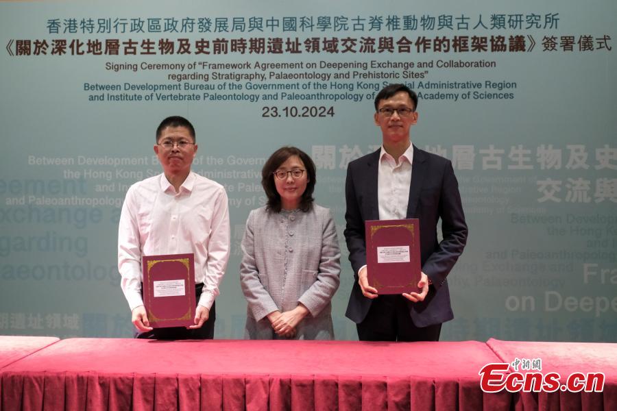 The Hong Kong Special Administrative Region government on Wednesday announced that dinosaur fossils were discovered for the first time in Hong Kong. It was initially confirmed that the fossils datedback to the Cretaceous period (about 145 million to 66 million years ago).