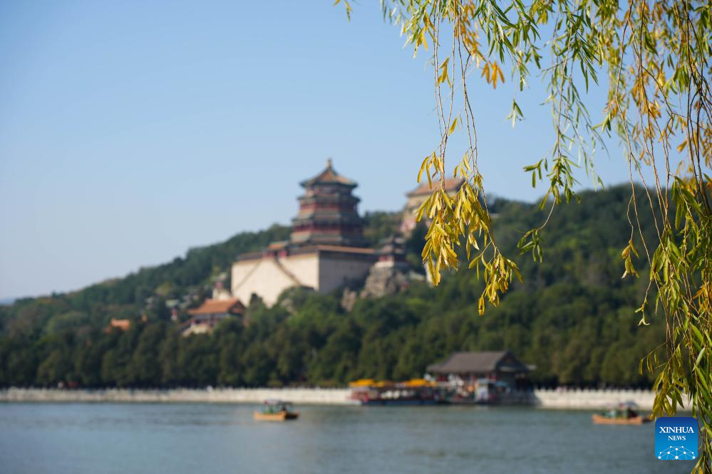 This photo taken on Oct. 24, 2024 shows the autumn scenery at the Summer Palace in Beijing, capital of China. The Summer Palace is China's largest imperial park and among the most noted classical gardens in the world. In 1998, it was listed as one of the World Heritage Sites by UNESCO. (Photo by Na Yuqi/Xinhua)