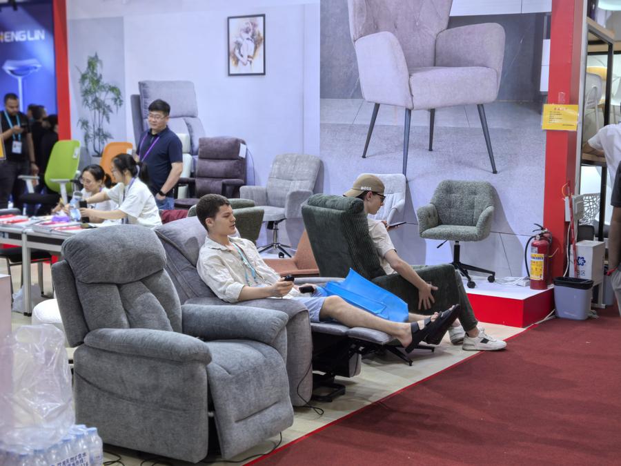 The chair was so comfortable that she was reluctant to get up for another walk. Anji Longwin Furniture Co., Ltd showcased the armchairs. Yuan Fengyi, senior business manager at Longwin, noted that the American and European markets account for over 90 percent of the company's sales.