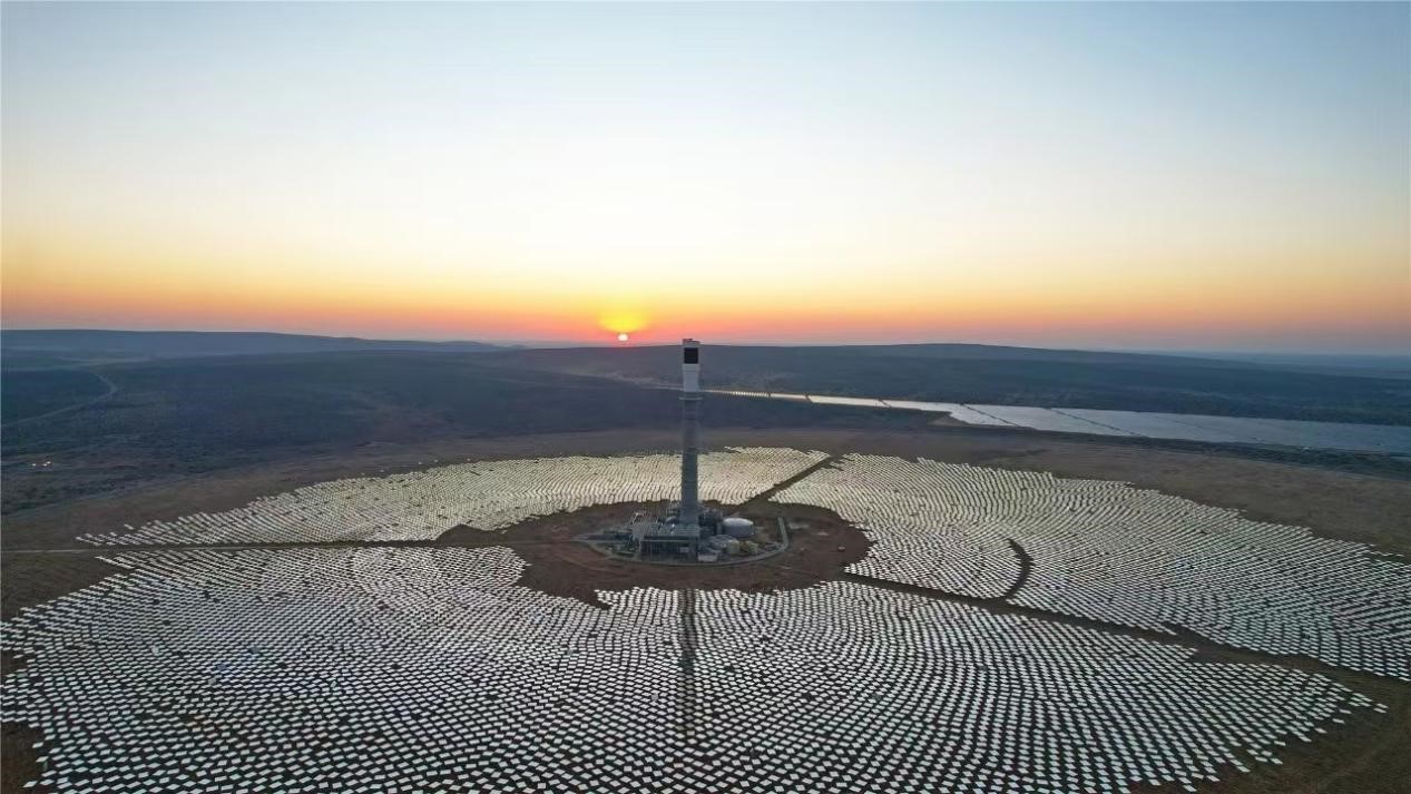 In the town of Postmasburg in Northern Cape Province of South Africa, where there are abundant sunshine and vast land, the Chinese-built 100-megawatt (MW) Redstone Concentrated Solar Thermal Power (CSP) Project resembles a giant sunflower, harnessing the sun's light and heat.