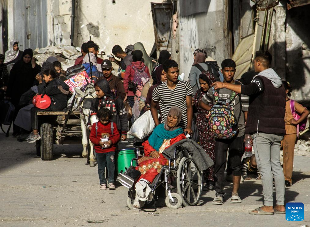 Local sources and eyewitnesses told Xinhua that Israeli aircraft and artillery heavily bombed the neighborhoods of Al-Manara, Ma'en, Sheikh Nasser, and the outskirts of Qizan Al-Najjar, south and east of Khan Younis, forcing dozens of families to flee toward the western part of the city.