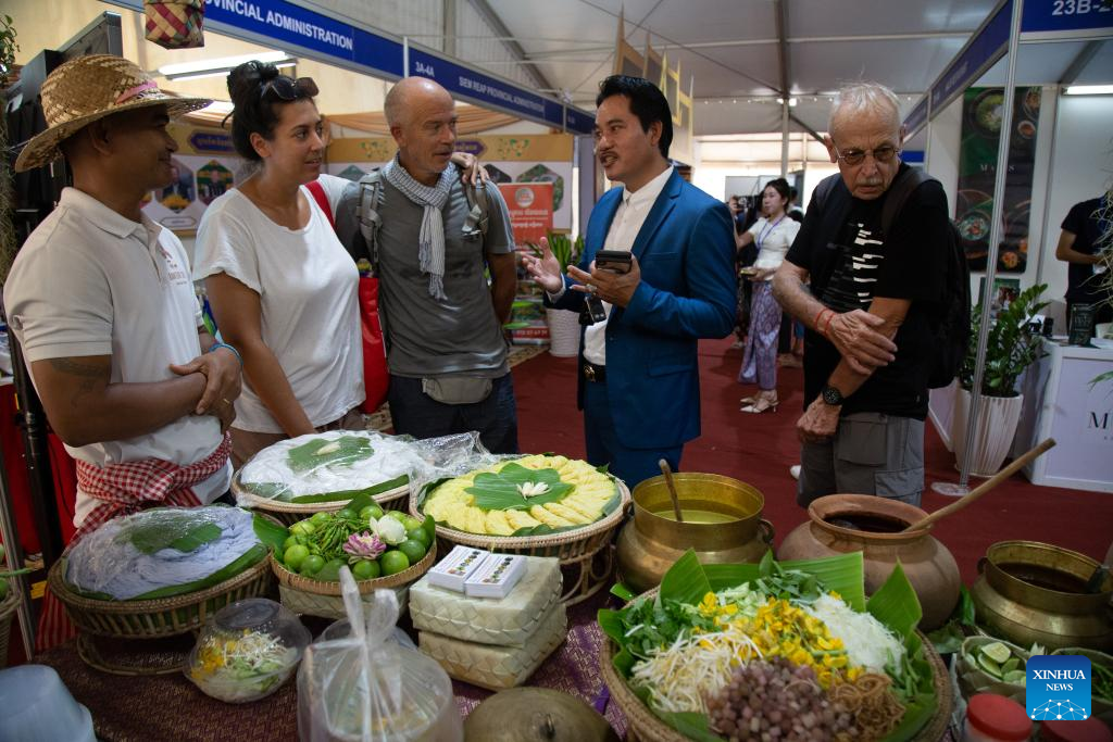 People visit the Cambodia-China Gastronomy Week in Siem Reap province, Cambodia on Oct. 26, 2024. A two-day Cambodia-China Gastronomy Week kicked off here in northwest Cambodia's Siem Reap province on Saturday, attracting food lovers. (Photo by Sao Khuth/Xinhua)