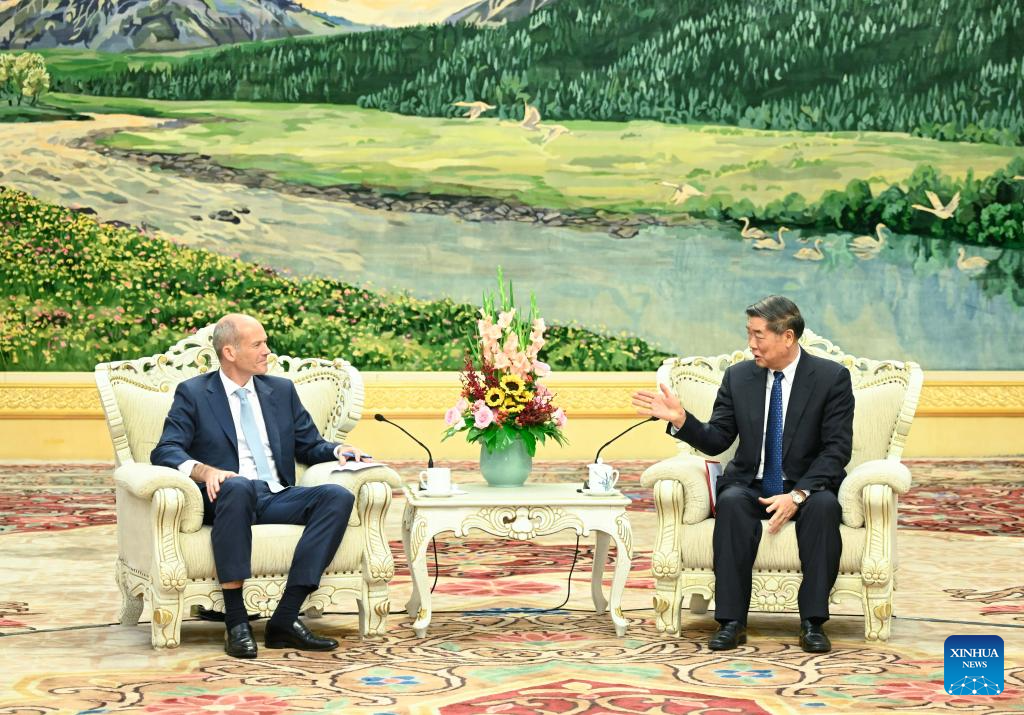 Chinese Vice Premier He Lifeng, also a member of the Political Bureau of the Communist Party of China Central Committee, meets with Ben Keswick, executive chairman of Jardine Matheson, at the Great Hall of the People in Beijing, capital of China, Oct. 28, 2024. (Xinhua/Shen Hong)