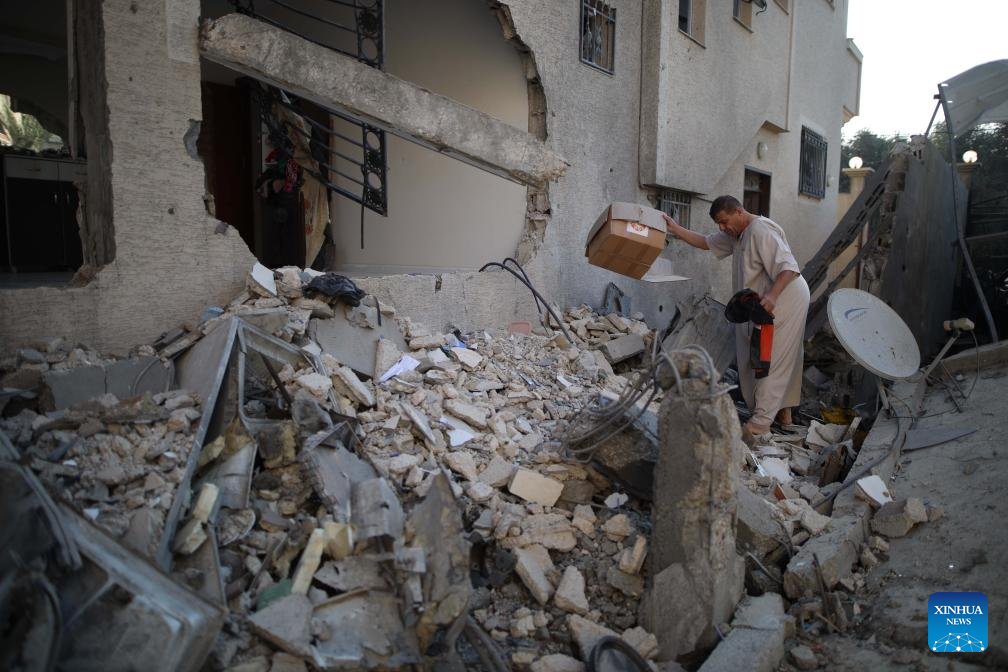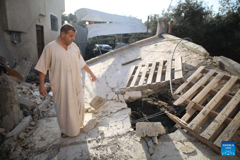 A man checks the damage after an Israeli attack in al-Nuseirat refugee camp, central Gaza Strip, on Oct. 28, 2024. The Palestinian death toll from ongoing Israeli attacks on the Gaza Strip has surpassed 43,000, Gaza-based health authorities said in a statement on Monday. (Photo by Marwan Dawood/Xinhua)